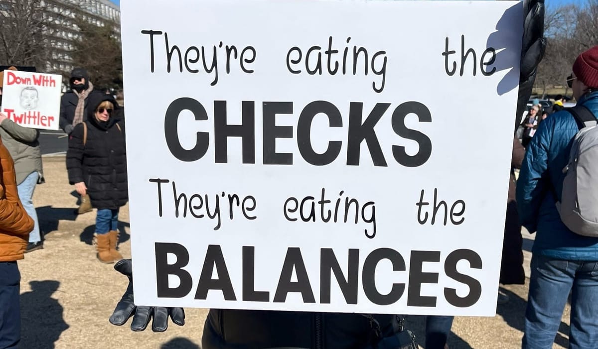 The latter protests – the ones against Elon Musk and his criminal DOGE hackers – were full of confusion and fear. No one had their bearings in a surrealist nightmare in which we had an unelected president. Congress had been nullified. Democrats howled and reeled and pointed at the rulebook as it burned at the feet of a tyrant.