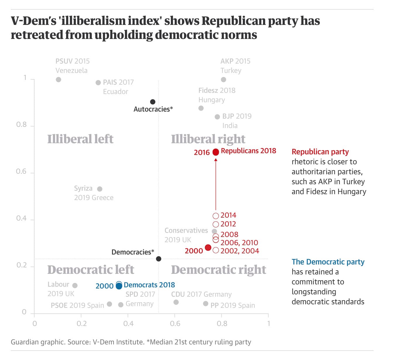 German authorities can attempt to limit or ban public funding for AfD only if they can prove the “party is explicitly out to undermine or even overthrow German democracy,” according to Reuters. The case against the Republican Party openly undermining democratic institutions in the US is an open-and-shut case. From limiting voting to paying citizens to vote for their candidates to using the police to stop political opponents from casting a ballot to implementing egregious gerrymanders, Republicans check every box. They are by any objective measure an authoritarian outlier in modern international politics, and they should be treated as such.