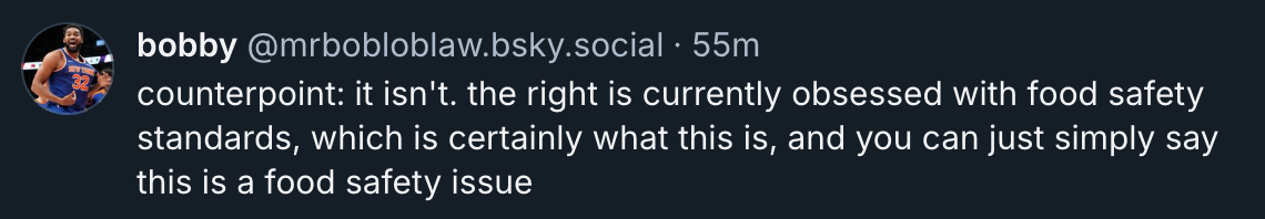 And that brings us back to the right's total domination of all media narratives. There is no widely-watched or read outlet that can push back with pro-molasses inspection propaganda – messaging that would emphasize just how dangerous it would be for you and your family if the federal government stopped inspecting the food we eat. That means of communication does not exist, so we continue to live in a world shaped by Rupert Murdoch and Elon Musk.