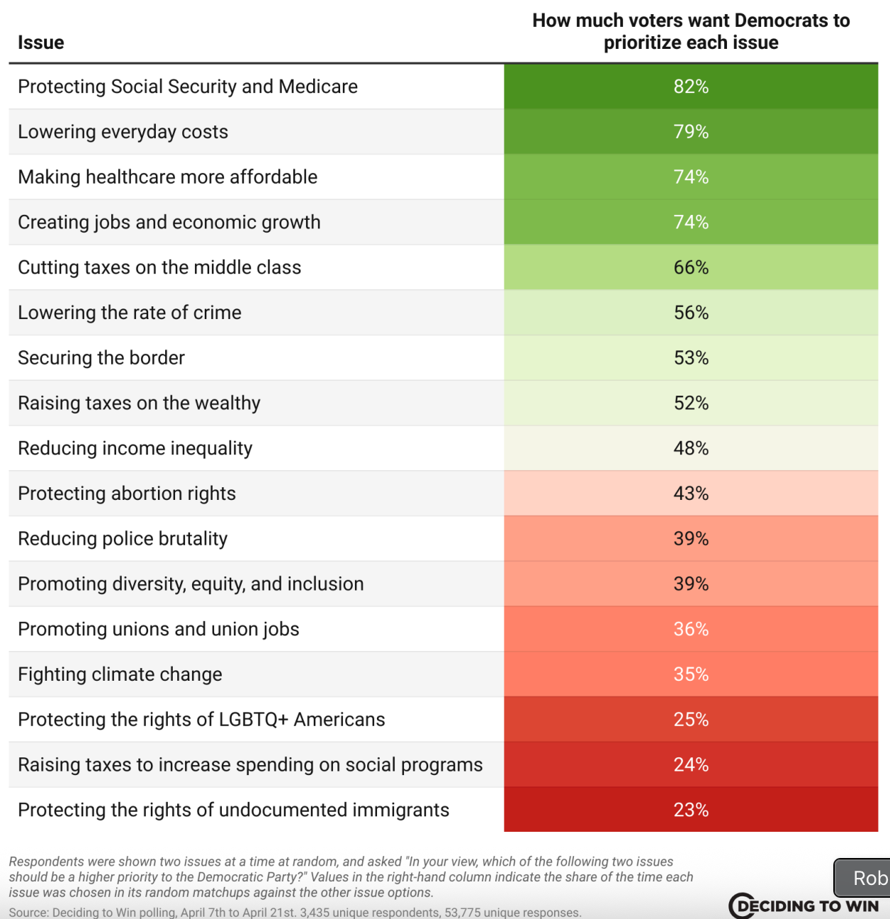 A bunch of well-meaning liberals recently gaged what might make for a viable popularist platform. These folks – desperately seeking a path back to pre-Trump normalcy – drew upon thousands of election results, hundreds of public polls and academic papers, dozens of case studies, and surveys of more than half a million voters conducted since the 2024 election. They concluded that defeating a fascist political party that has abandoned all precepts of a functional democracy requires Democrats to focus on "the economy, the cost of living, health care, border security, and public safety," and to ignore "climate change, democracy, abortion, identity and cultural issues."