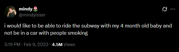 I was going to begin this blog by revisiting the toxic discourse around a 2023 tweet about smoking on the train by Mindy Isser, a left-leaning Philadelphia organizer who posts mostly about the labor movement.